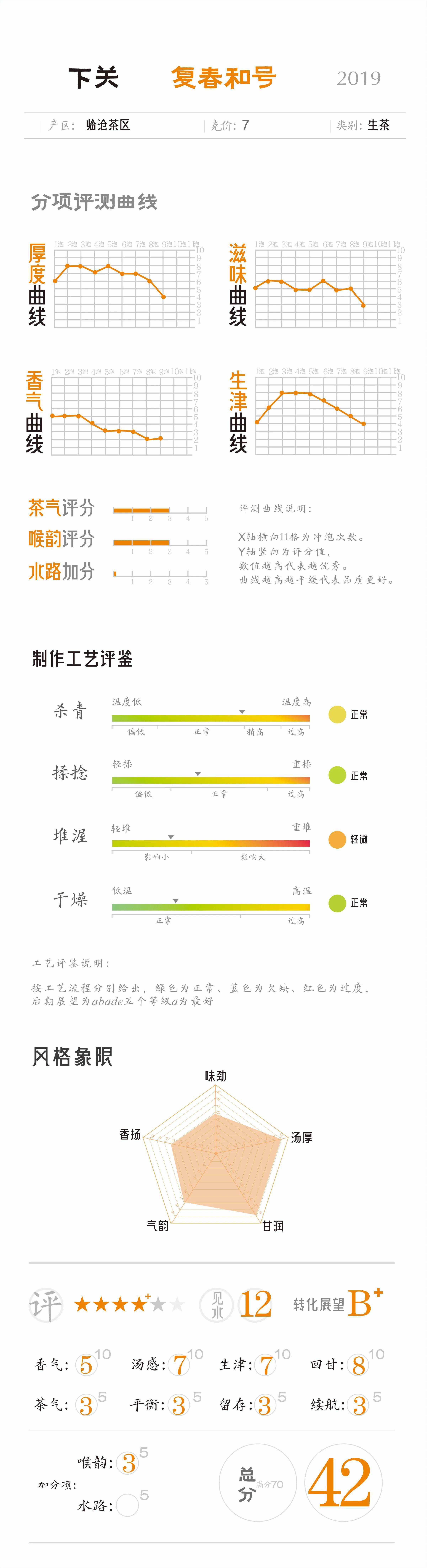 总体这是是一款冰岛风格的茶,有一定些典型的冰岛特征,但这些特征又远远没有达到古树的水准。一般会有两个维度,一是生津感,冰岛茶区古树茶生津感非常快,且持续时间很长。以小时记。二是甜感,冰岛甜在尾水尤为明显,茶汤会有明显的清甜感,加上比较高的耐泡指数,普遍会在11泡以上。