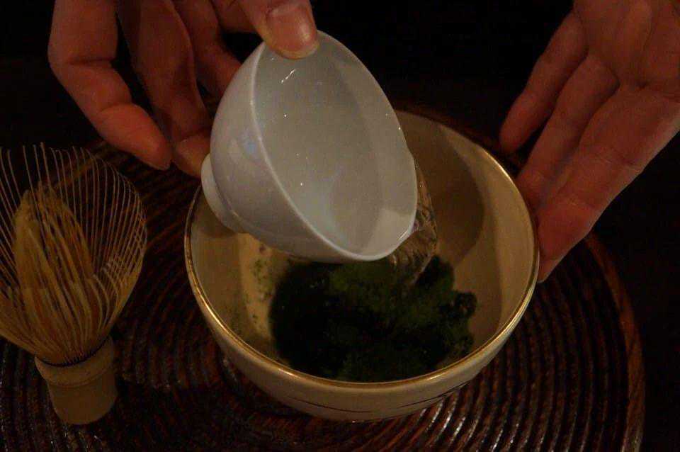 然后用茶筅在茶碗中画字母M搅拌,进行点茶。