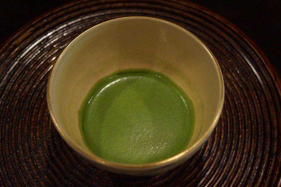 如果点抹茶的话,是由店员来操作的,会按照客人的要求,在眼前进行点茶。放在茶碗中的抹茶颜色看起来很是鲜艳。