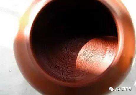 1、壶身内壁,可以看到明显的手拉痕迹,即横向的螺旋状纹路,一圈一圈的。这个要和半手工制作才看到的非常细的一丝丝的痕迹进行区分,手拉的纹路是比较粗些的圈状痕迹,半手工是丝状痕迹。目前很多手拉胚壶内壁会采用通身的推墙痕迹来掩盖手拉纹,需要仔细观察才能看到隐约的罗圈纹。