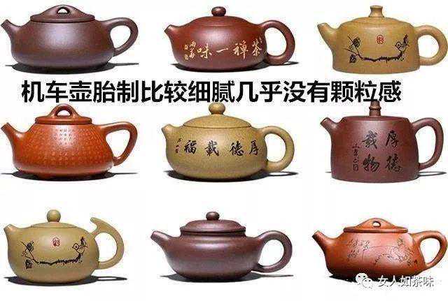 机车壶的泥料通常都是比较差的,成品壶的泥料水色较差,同样差不多大小的壶拿在手里的分量比手工制作的紫砂壶要重很多。