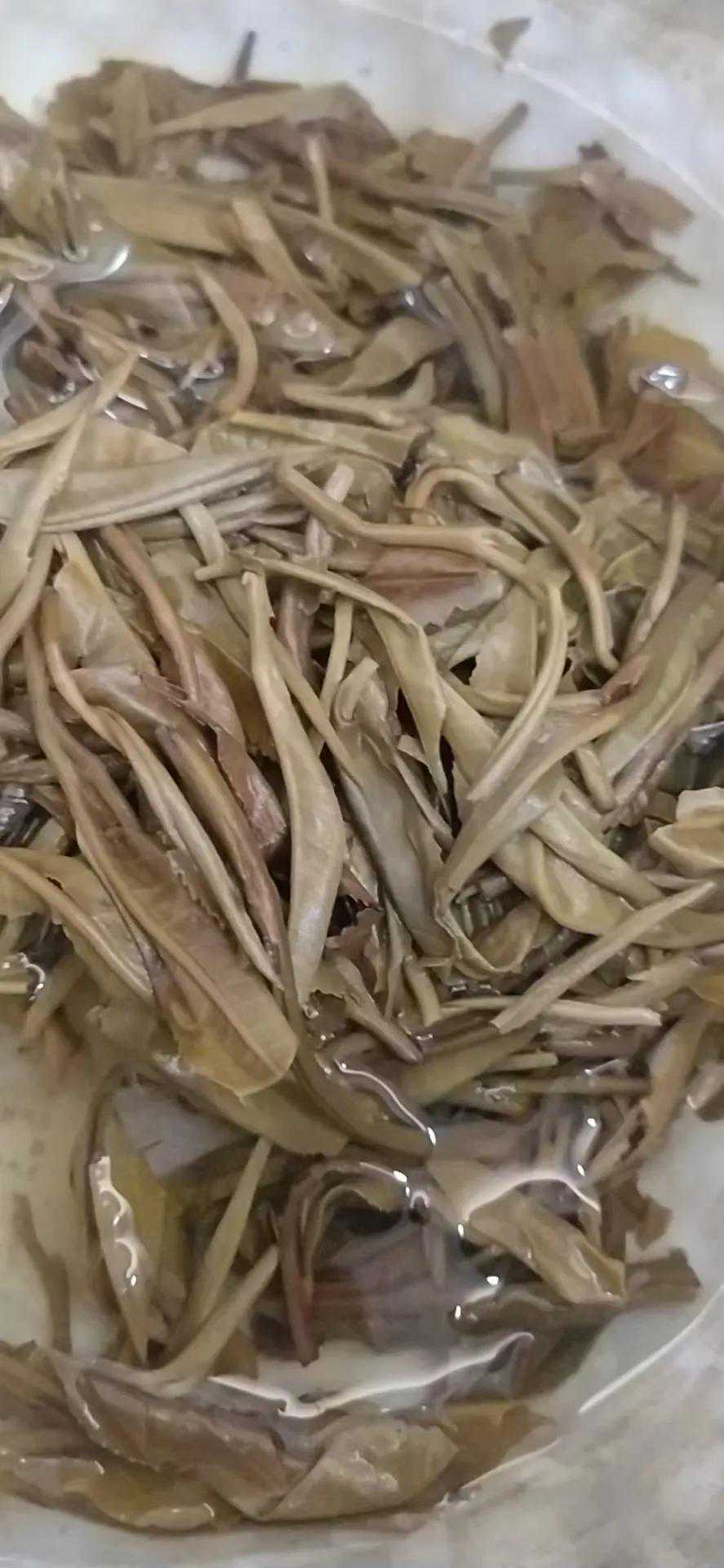 叶底我就不码整齐了,因为是散茶,只是原来叶子的放大,叶底柔韧性非常好,肥厚弹性良好,犹如捏在薄薄的牛皮上,一芽二叶的原料,也是精挑细选非常漂亮。老曼娥据说土壤以赤红土,种植出来的茶树才会有独特的苦味。作为大班章产区独树一帜的茶品推荐,有故事的人自己独饮。苦尽甘来就是人生啊。