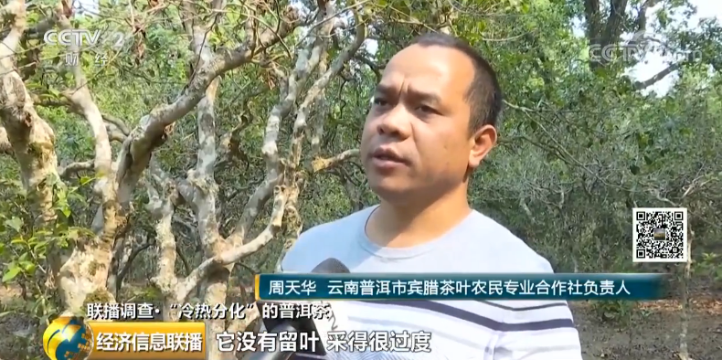 业内人士表示,一方面由于茶叶价格高,茶农就多采摘,另一方面,茶农高价把采摘权包给外来方,外来方为了收回成本,就能采多少采多少,对古茶树伤害极大。