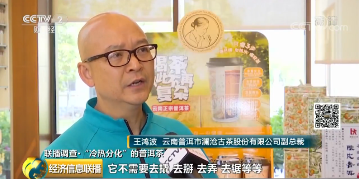 云南省普洱市澜沧古茶股份有限公司副总裁王鸿波:它不需要去撬,去掰,去弄啊,去锯啊等等,所以它一颗拿过来扔进去,加水就能泡,就等于像喝饮料一样那么简单。