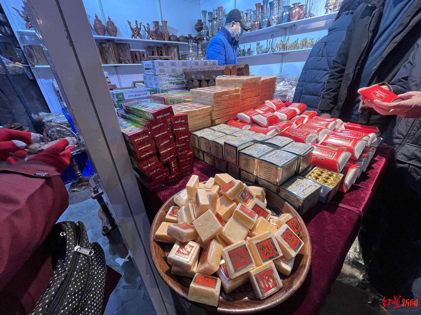 青白江区亚蓉欧国家(商品)馆展区集结了澳大利亚、新西兰、英国、法国、意大利、葡萄牙、希腊、比利时、德国、白俄罗斯、阿塞拜疆、哈萨克斯坦、巴基斯坦、尼泊尔等十四国的进口食品、生活用品等。“5块20元。”在巴基斯坦展区,商家操着不太熟练的中文给消费者推荐一款衣柜芳香膏,记者凑近一看,这是一种淡橘色、散发出浓郁果香的小方块。据商家介绍,把它们放在衣柜里可以让衣物持久留香,还可以防虫防霉,这款芳香膏一时间引来了许多市民选购。