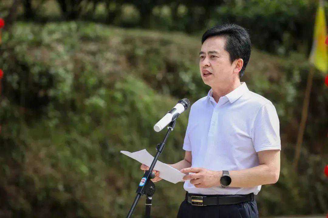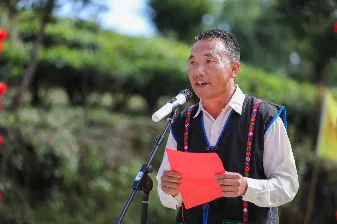 ▲茶农代表范元明在仪式上发言