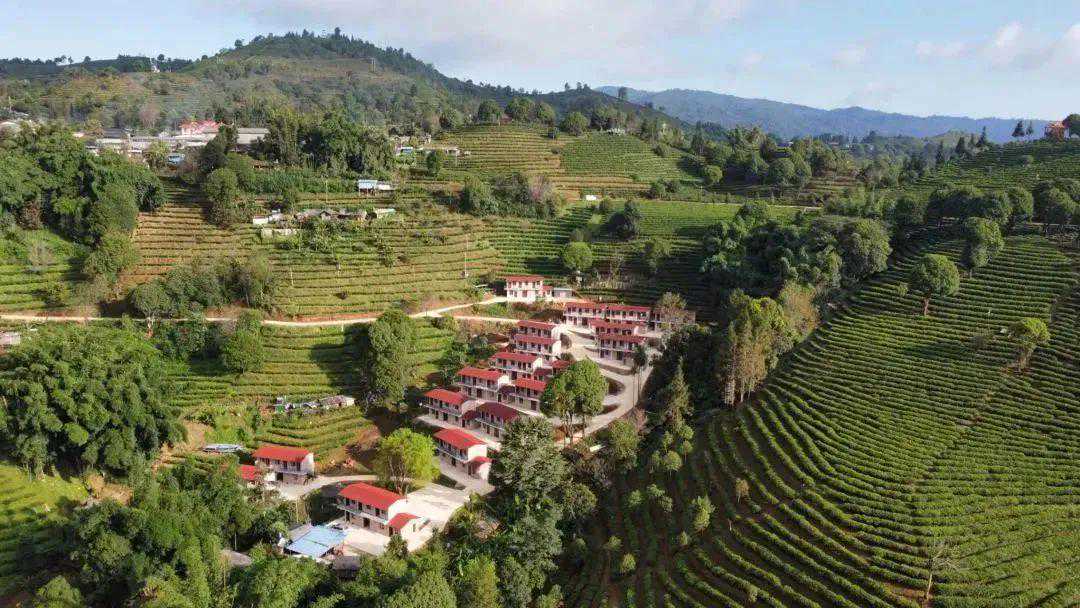 ▲茶农住房改造项目二期工程已完工,一座座独栋的两层小楼点缀在茶山绿海之中