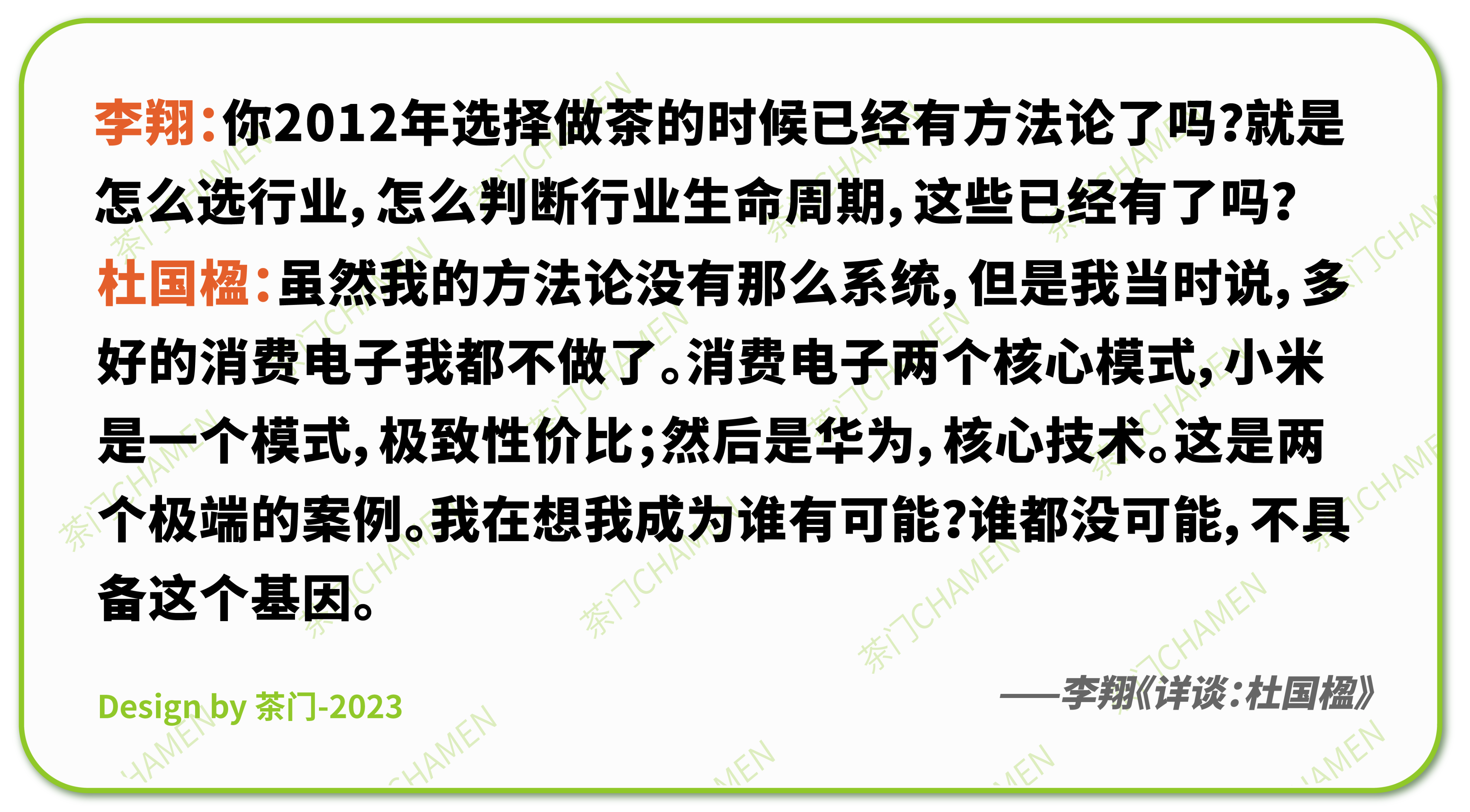 最后,茶门作为一个同样立志推动茶产业链发展的茶行业新商业媒体,也从自己的立场,简单分享一下自身对于杜国楹与小罐茶的看法。如有不同见解之处,也请轻拍。