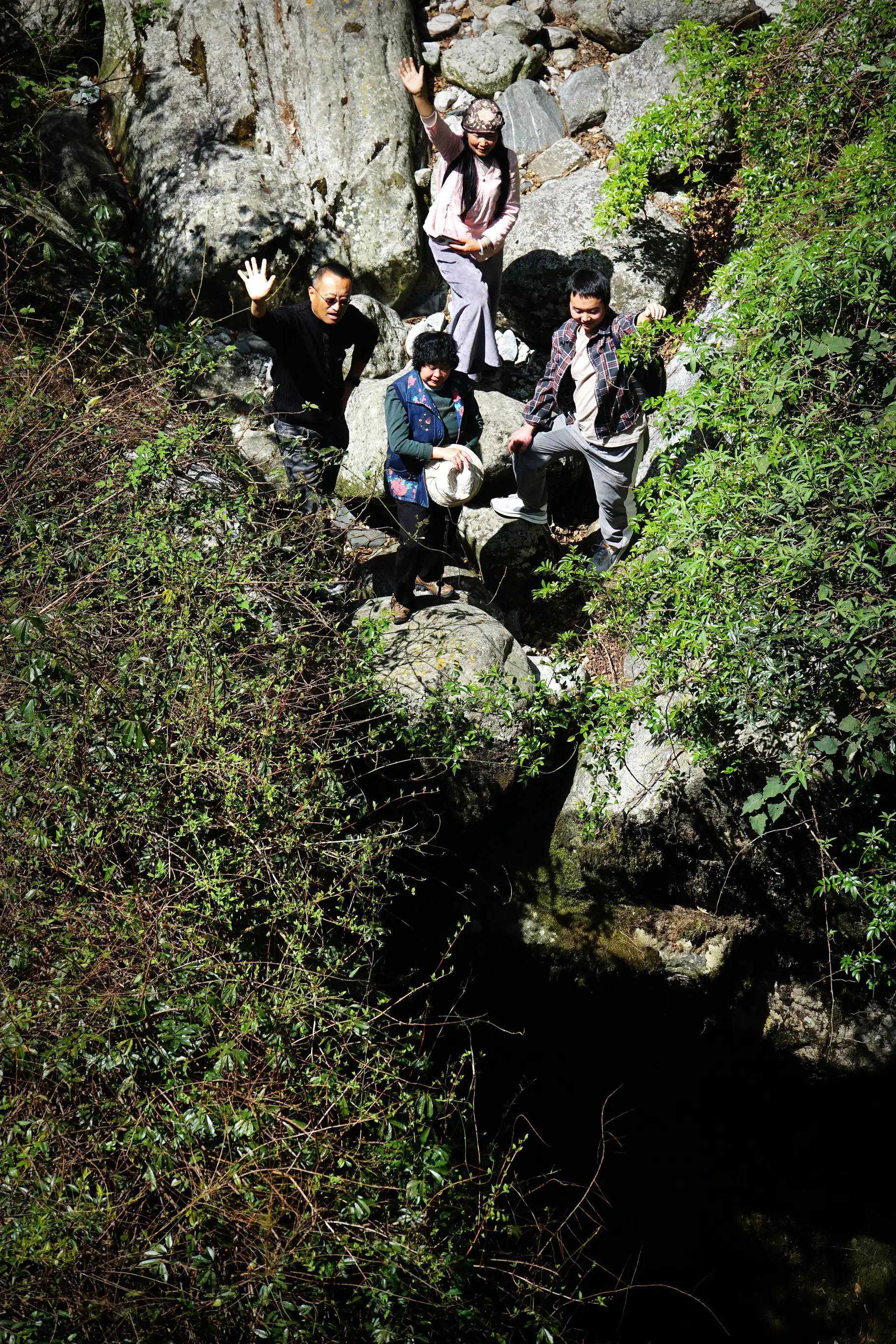 接着,我们一行沿巨石凿成的台阶来到第二潭水右侧上方,刘会长再次拿出《徐霞客游记》与杨文勋会长和那茂菊老师字斟句酌对照寻找徐霞客当年滑跌落水的位置细节。
