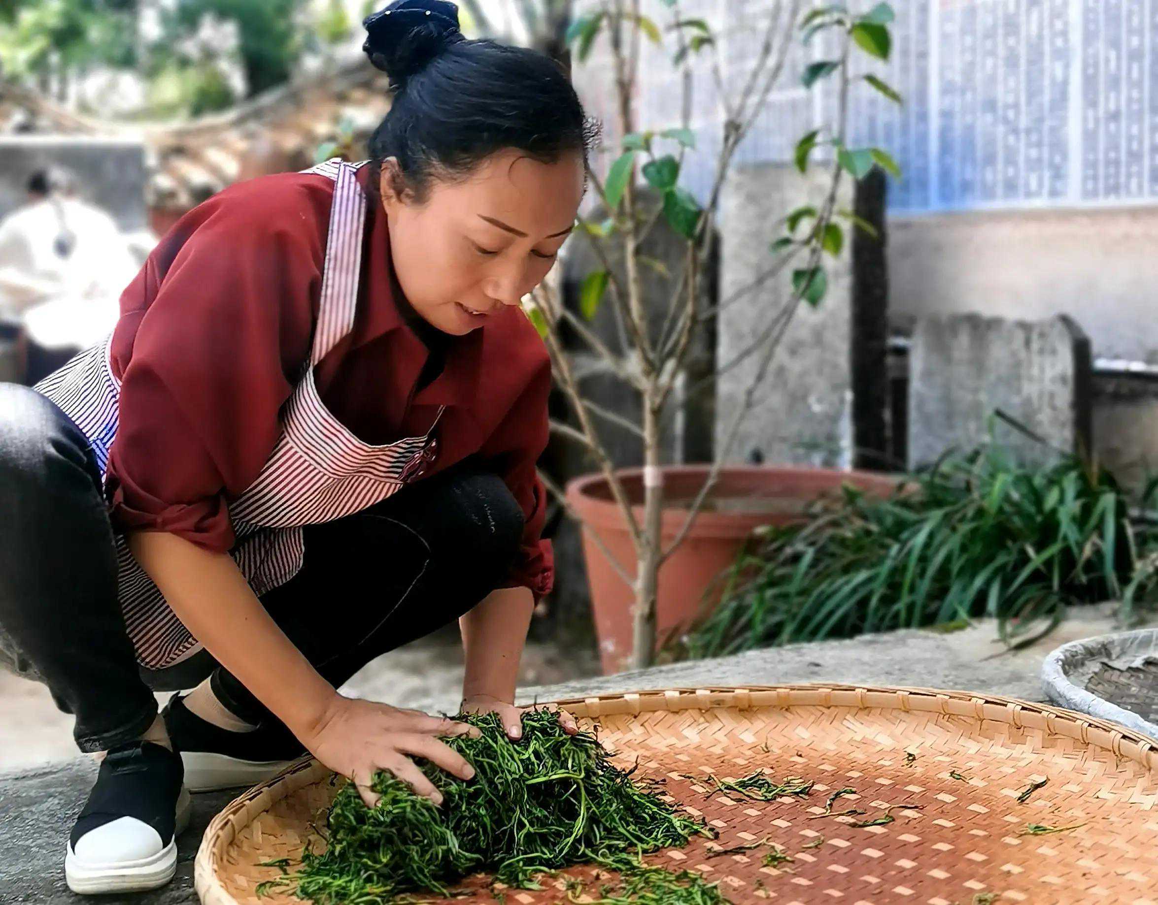 传慈原籍楚雄,来感通寺30多年了。忙碌在一起制茶的还有我多年的微友、大理著名导游杨娟(下图左)