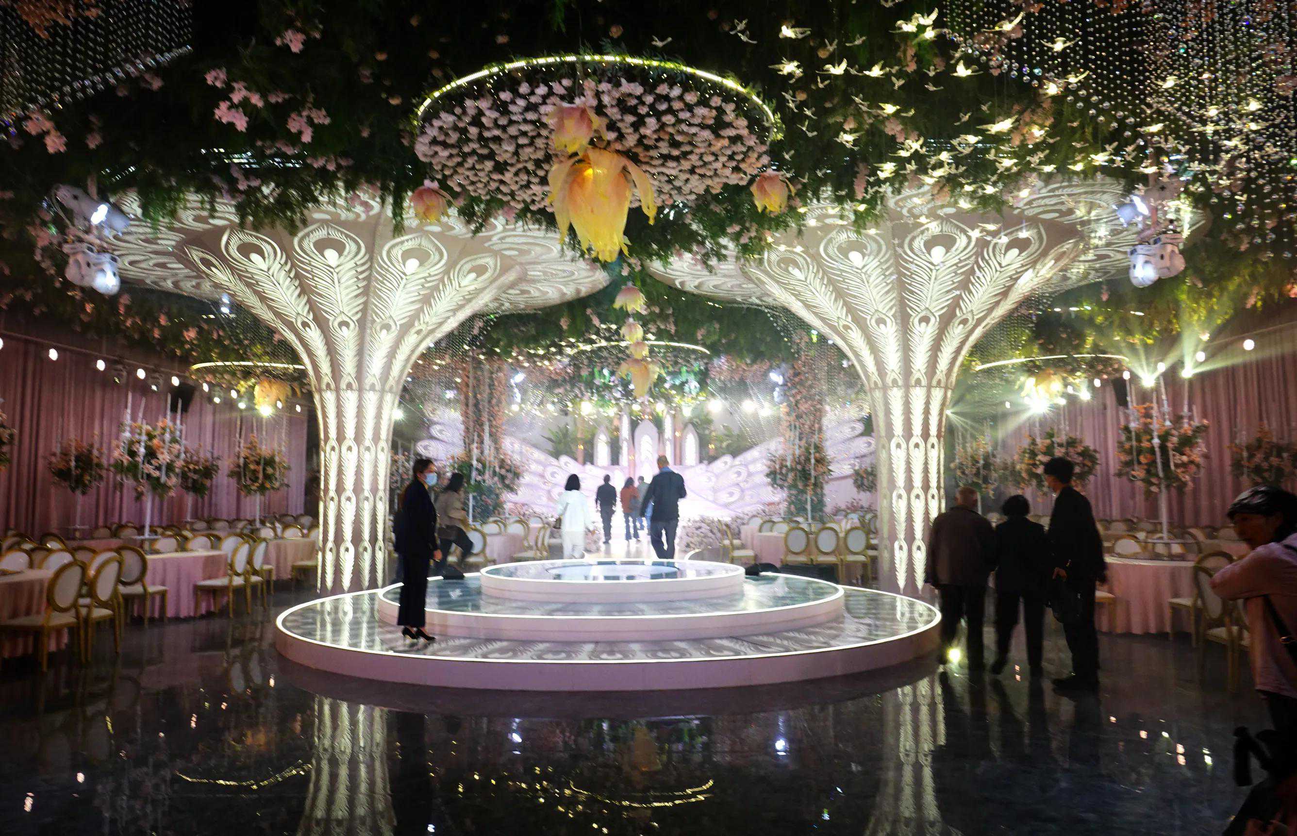 下山驱车前往下关原棉纺厂区新建的“三江.滇和缘”酒店管理有限公司,原来今天与我们同行的33岁的董群芳竟然是这家公司的董事长。她带领我们一行参观了几个婚礼大厅:宽大的礼堂,多彩多姿、不同风格的装修及华丽幻化的灯光效果真令人震撼。