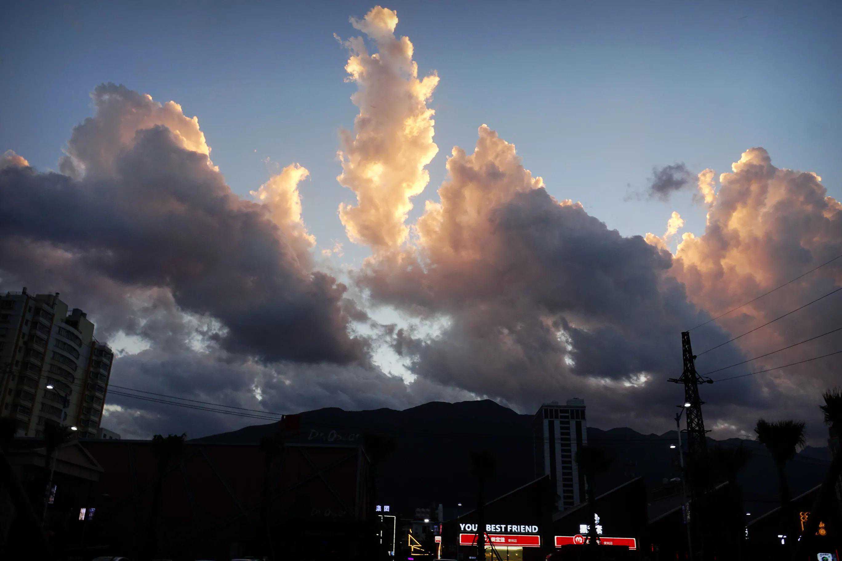 当我们驱车离开这里的时候,天空出现了美丽的祥云,