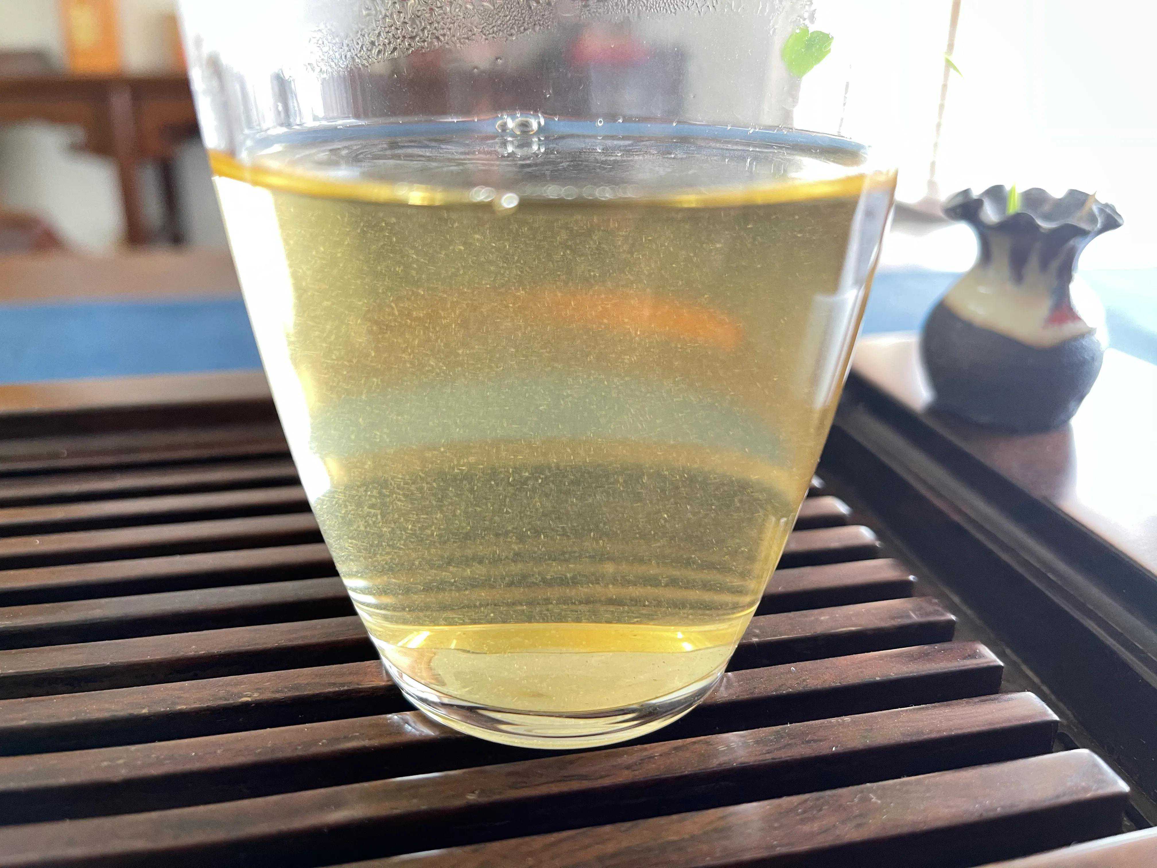 第二泡,7″出汤,汤色浅黄略微泛绿,微清亮,