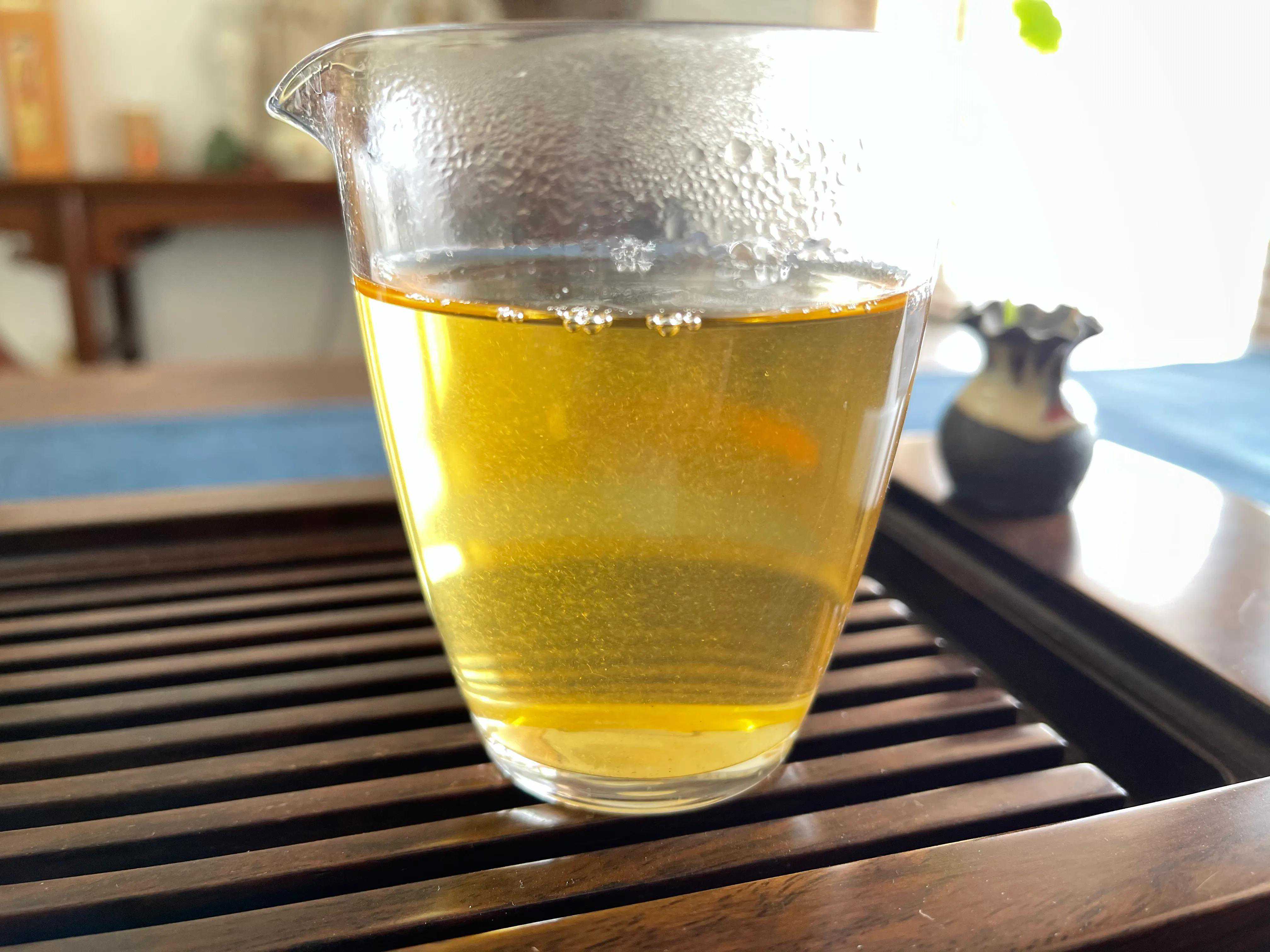 第三泡,7″出汤,汤色明显加深,金黄色略微清亮,