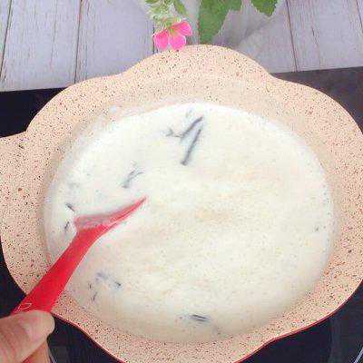 3、边煮边搅拌,防止奶糊锅,煮5分钟左右关火