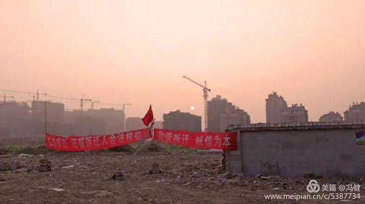 我不知道,工地旁这个标语是政府还是拆迁户挂在这儿的,但和谐拆迁应该成为大家的共识。