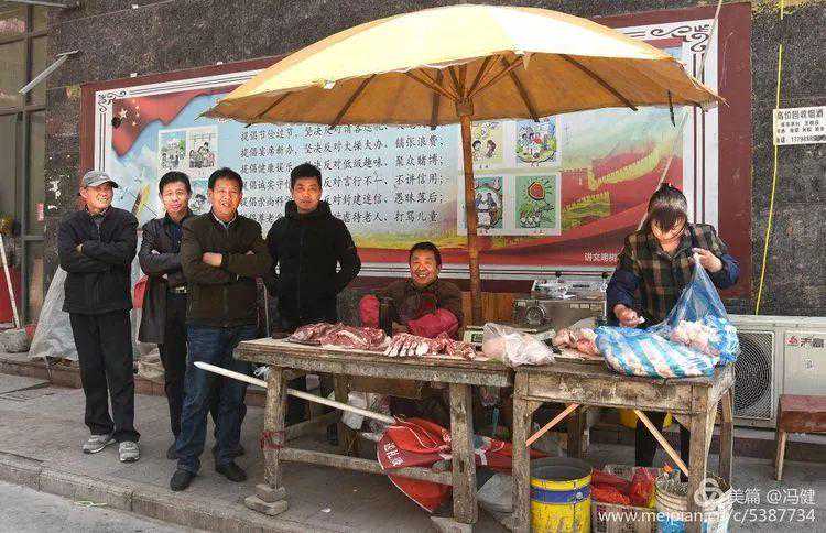 有朋友告诉我照片上有一个卖肉的叫陈小龙的并没走远,因为他的那些客户还在周围,5年后,我找到了陈小龙和他的妻子曾宝云,陈小龙从下关拆迁后,就在皇冠国际南大门口经营,下关拆迁陈小龙拆到了五套房,陈小龙就一个儿子,也在经商。站在照片前面的叫秦凤林,也是老下关街上的,他是杀牛的,当时一年要杀百十头牛,牛经他过手一摸,上下不会误差十斤,他在学府一号拆了四套房。