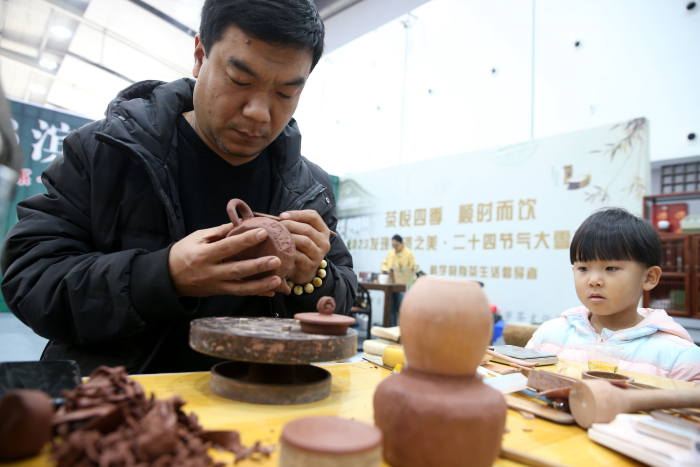 记者注意到,近万平方米的展厅内茶香四溢,各个展区内茶艺师们拿出自己的品牌产品,供茶友们品尝。云南普洱、安化黑茶、六堡茶、安溪铁观音、武夷岩茶、台湾冻顶乌龙、阿里山高山茶、福鼎白茶以及斯里兰卡红茶和日照绿茶、平阳黄汤、崂山绿茶等,茶叶种类琳琅满目;新会陈皮、金丝皇菊、苦荞茶、枸杞茶等养生茶也是应有尽有;茶器展区也是林林总总,包括江西景德镇瓷器、江苏宜兴的紫砂壶、河南禹州钧瓷、山东淄博的陶艺、红木茶桌展位前,工艺美术师们现场亮起了手艺。
