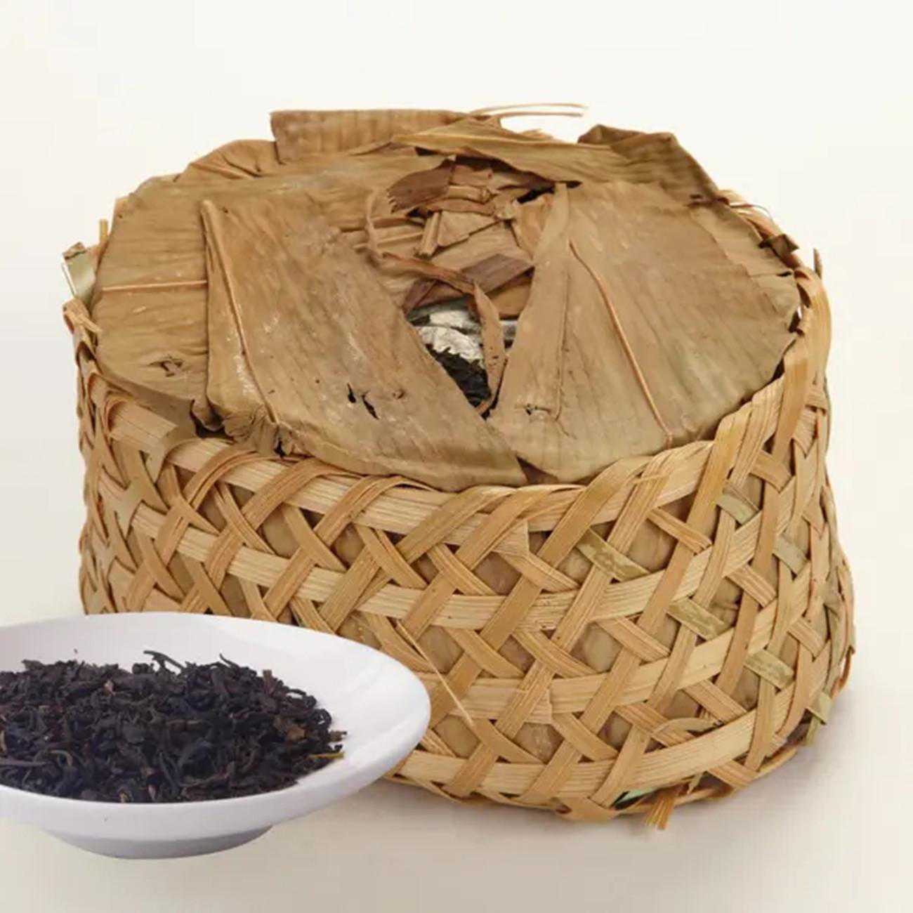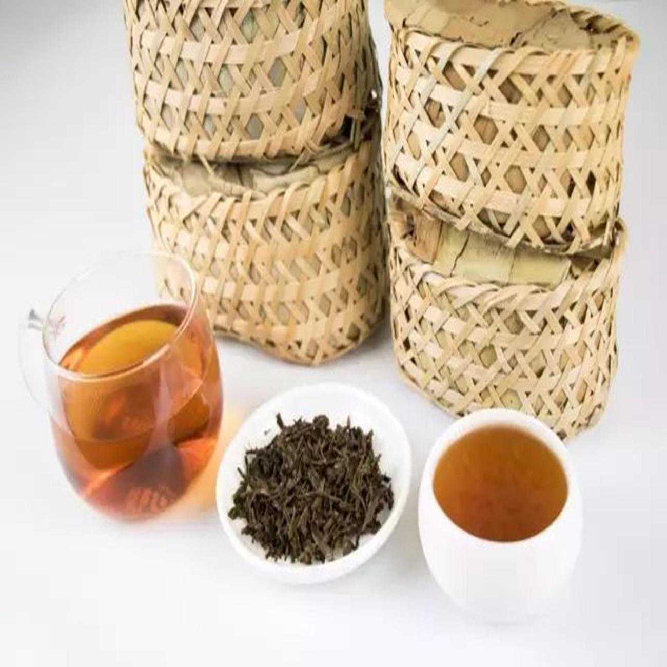 贮藏陈化阶段:分为打围、堆放、共2道工序。以【安茶】传统的大包装方式、用竹蔑条将茶篓再次包扎成大件,以便更好的贮藏存放。包装好的大件,放置于阴凉通风处,自然陈化。