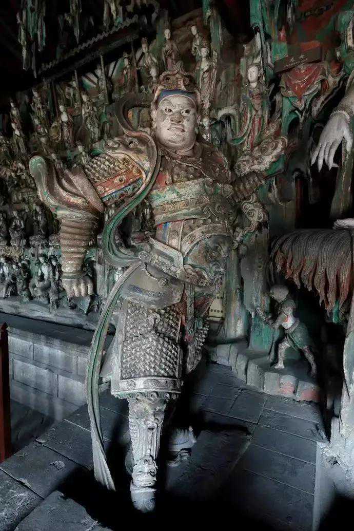 双林寺中的唐槐、宋碑、明钟以及古代建筑、彩塑和壁画,都是稀世珍宝。尤其是寺中的各种彩绘泥塑,更令人称道不已。这些彩塑形神兼备,尤其是千佛殿的韦驮像最为有名。据说韦驮的动作看似简单,实际上常人很难完成,大家可以参照一下。(图三,网上借图,寺院内部不允许拍照)