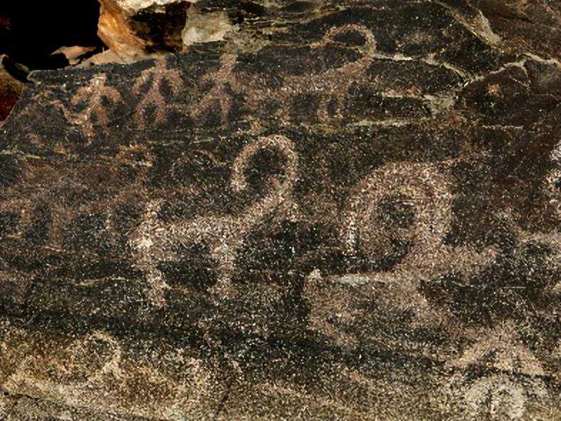 如果岩画点和其附近的遗址包含多个时期的考古学文化,我们可以先分别研究岩画和遗址的时期特征,然后寻找和确认各个时期岩画与遗址文化之间的共存关系,从而确定岩画的年代。