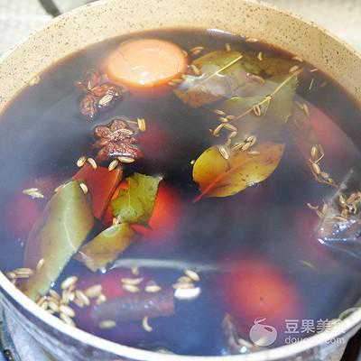 8、大火煮开后,转小火再煮5分钟,将香料的味道煮出来