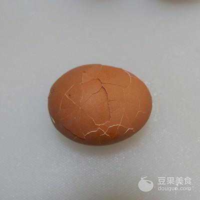 2、放入锅中煮熟。煮熟后,用勺子将蛋壳稍微敲碎备用