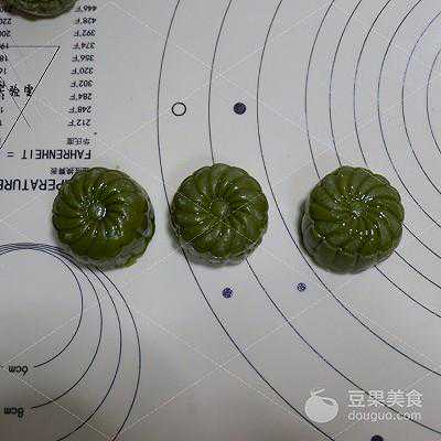 11、月饼模具里抹少许色拉油,将包好的月饼压出形状即可。