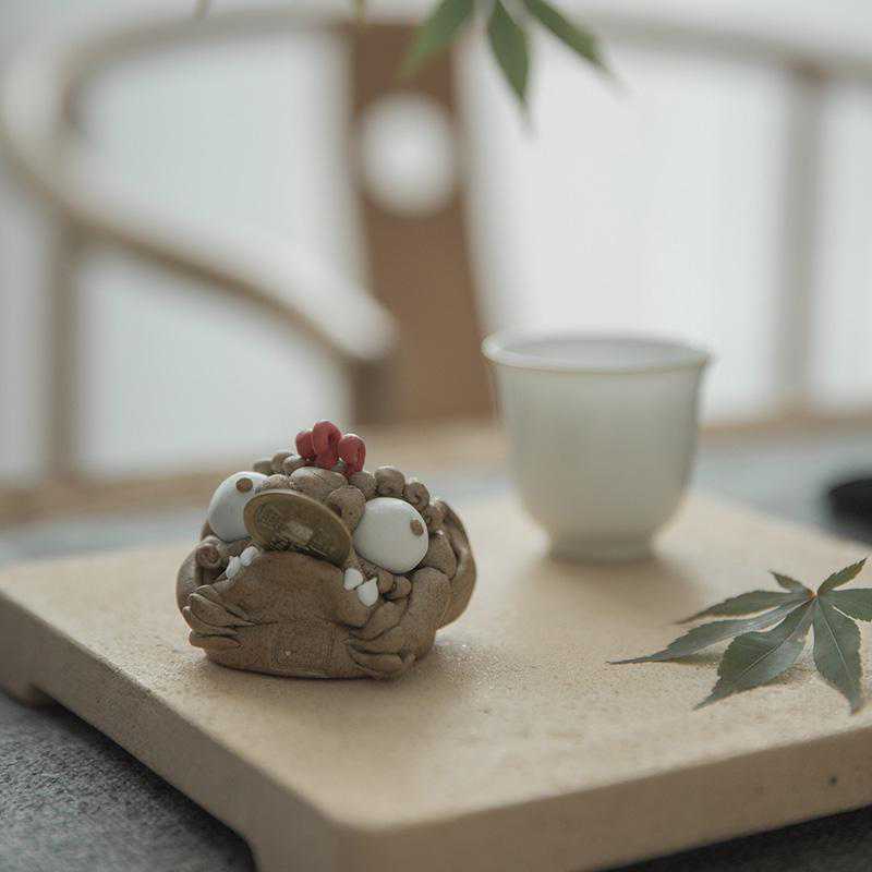 “滋养茶宠“,其乐无穷。有些茶宠利用中空结构,淋上茶水后会产生吐泡、喷水现象,给品茗休闲增添了情趣。”市场上流行的茶宠主要是采用紫砂、树脂,或者陶土制作而成。茶宠是工艺美术师闲暇时所创作的一个新种类,以紫砂茶宠最为常见和好养,最近几年渐渐形成了风气。