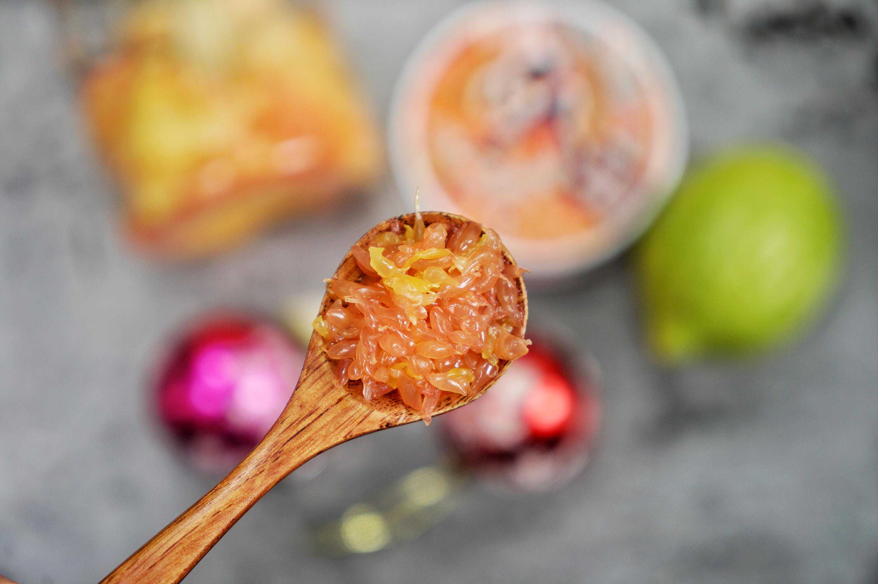 晶莹漂浮的西柚粒,是橙香茉莉的卖点。可以翻来覆去倒腾,好似看人生沉浮;进入口腔,亦能感受微微爆汁的西柚粒带来的惊喜。
